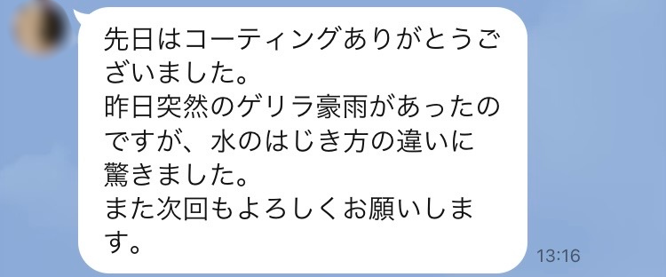 | ご来店時のお悩み | ボディのツヤ、撥水 |